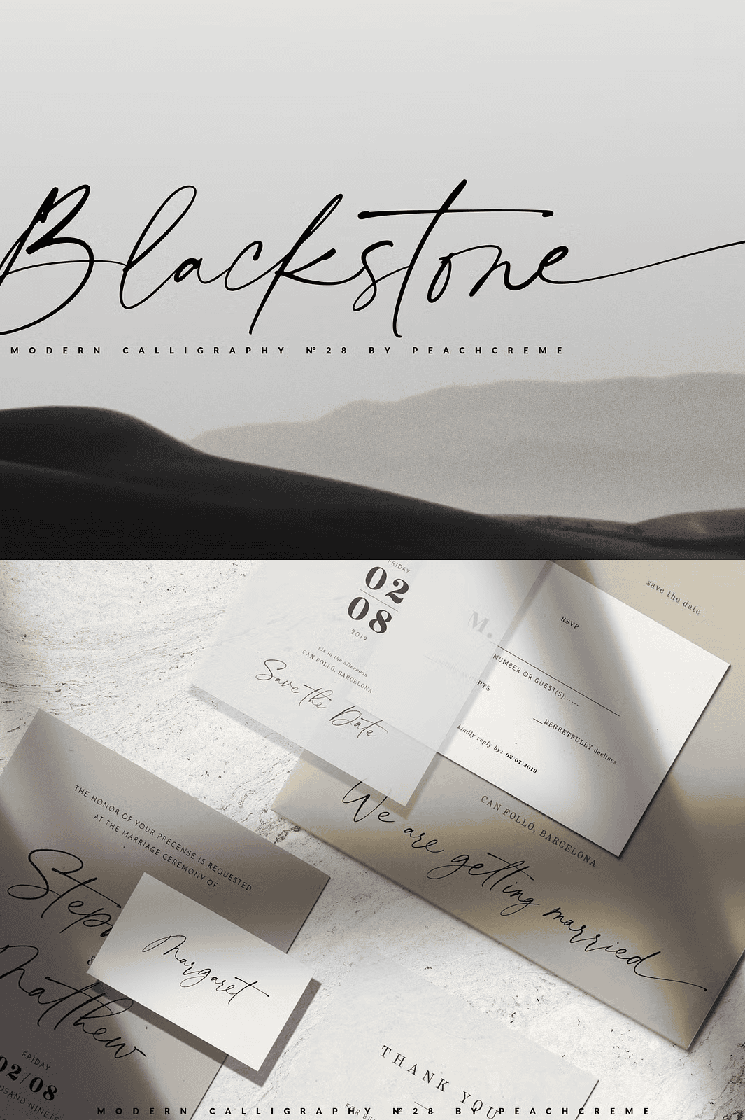 Why use a generic font that blends in? Stand out with **Blackstone**, the modern calligraphy font that brings **confidence, flair, and effortless elegance** to every project. Whether you’re designing a romantic wedding suite, a boutique label, or a bold brand campaign, Blackstone gives your work the soul it deserves.