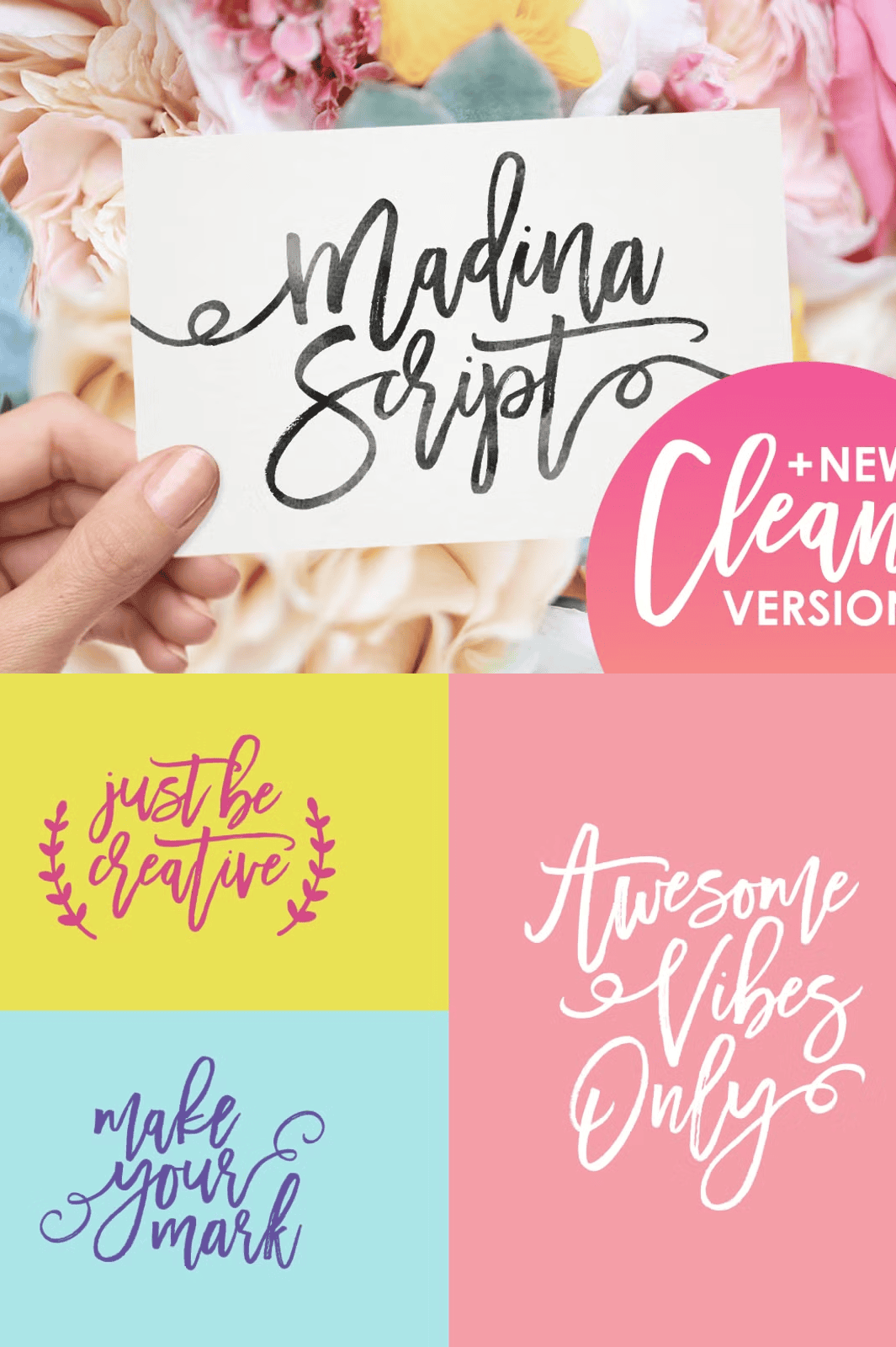 This isn’t just a script font — it’s a complete creative toolkit. With its exaggerated curves, lively loops, and smooth connections, Madina Script mimics the natural flow of a skilled hand letterer. The result? Text that feels alive, personal, and uniquely crafted — no matter how many times you type the same phrase.