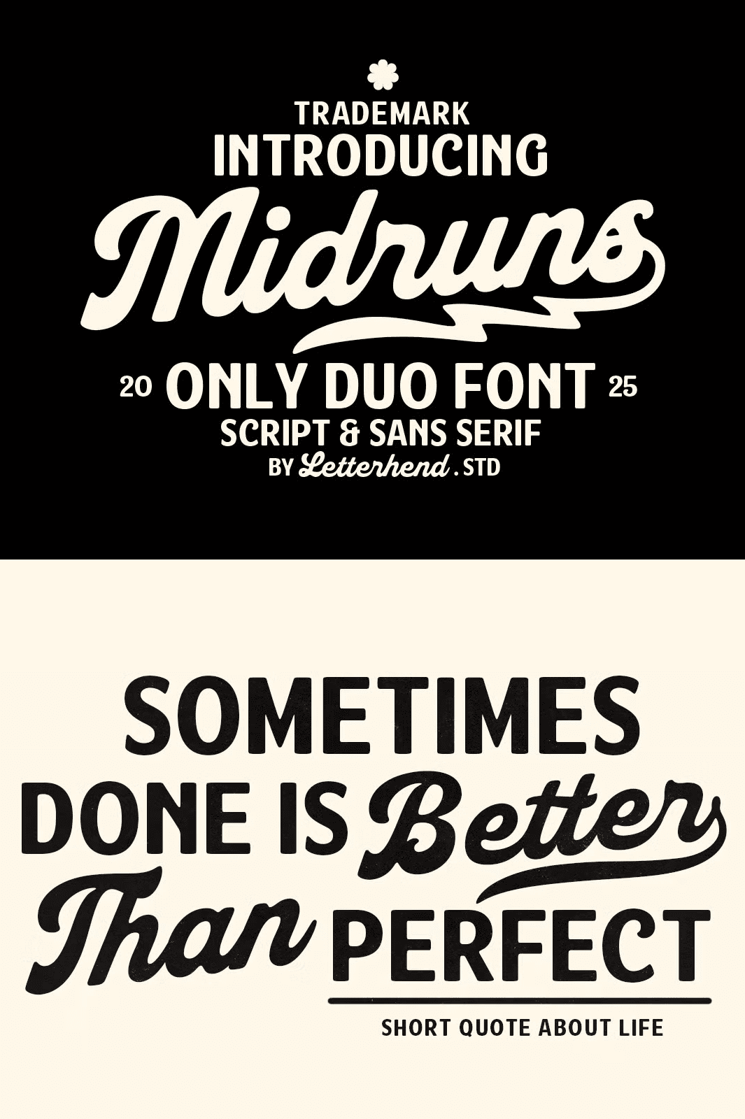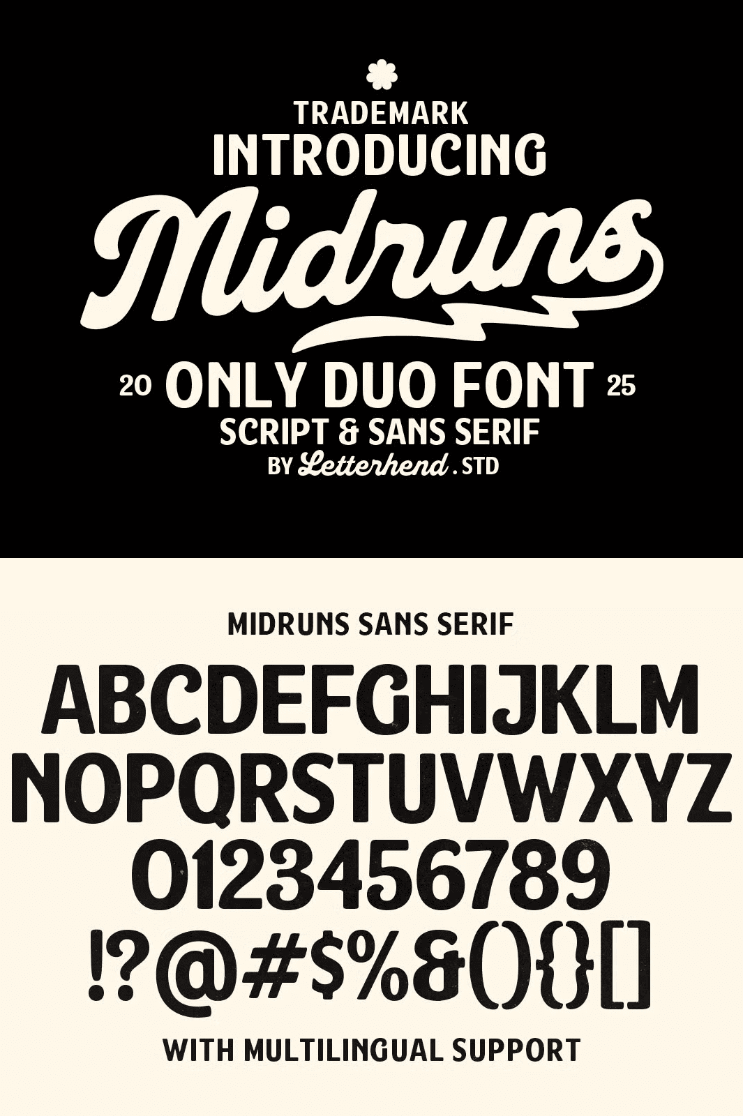 The **Midruns Font Duo** isn’t just a font it’s a creative catalyst. Born from a bold vision to merge retro aesthetics with modern functionality, this dynamic duo delivers two powerful complementary styles: a flowing, expressive script and a crisp, clean sans-serif typeface. Together, they create a striking visual contrast that commands attention while maintaining exceptional readability and design versatility.