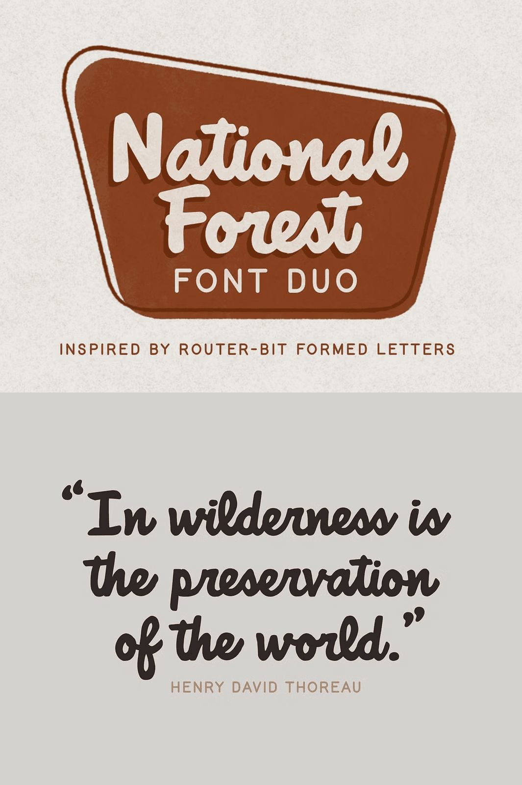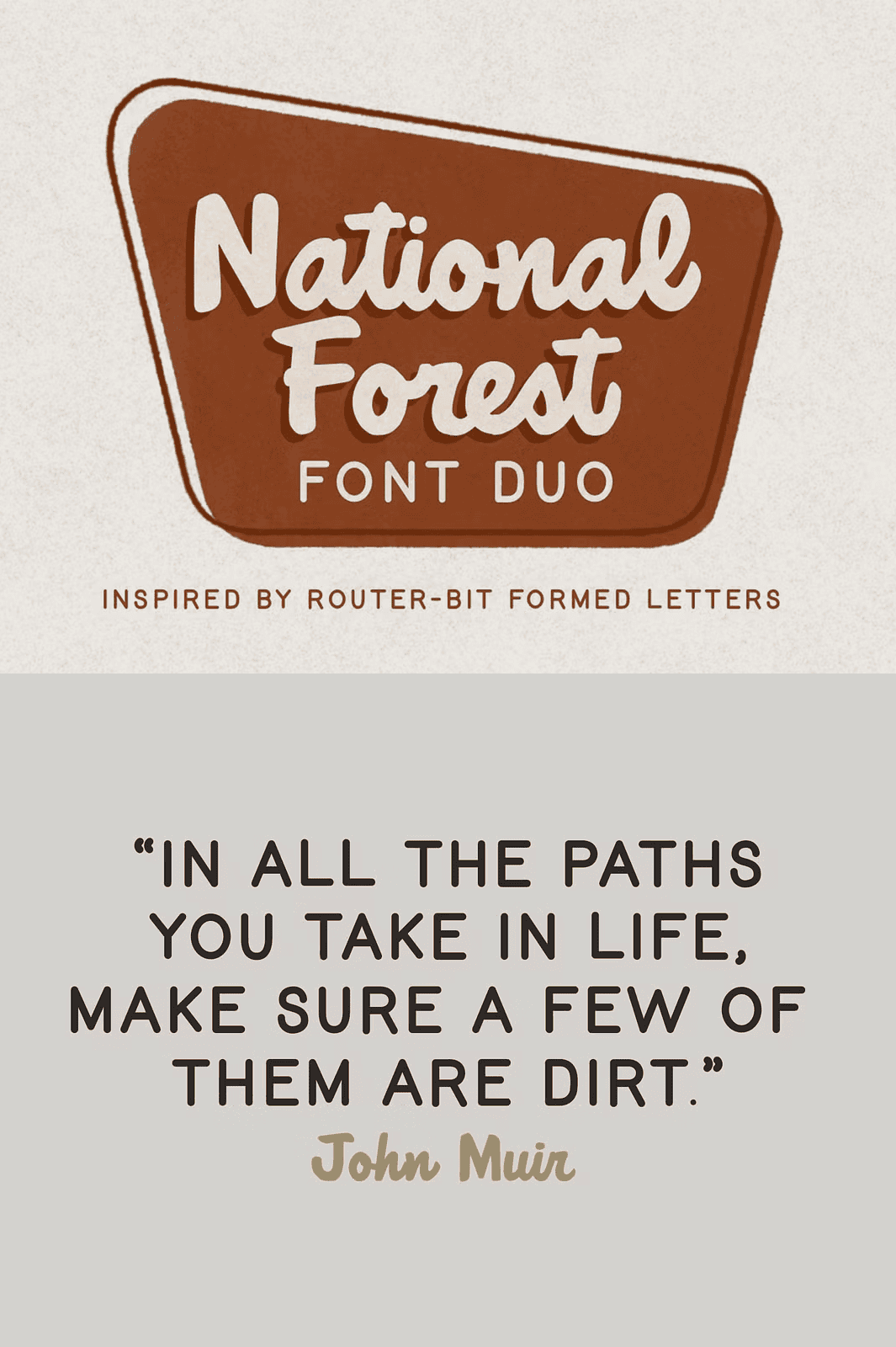 Bring the nostalgic spirit of America’s National Park Service signs into your digital designs with **National Forest Font Duo** — a bold, character-rich typeface crafted to mirror the hand-crafted precision of router-cut signage. Every character is designed to reflect the authentic imperfections of real-world craftsmanship, giving it an organic, lived-in feel that mass-produced fonts simply can’t replicate.