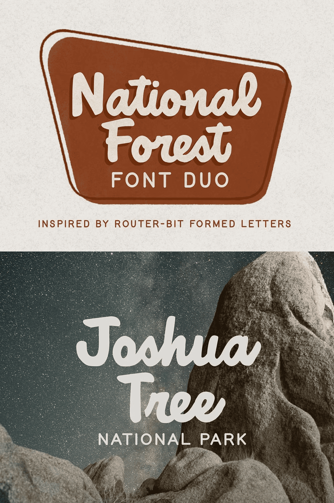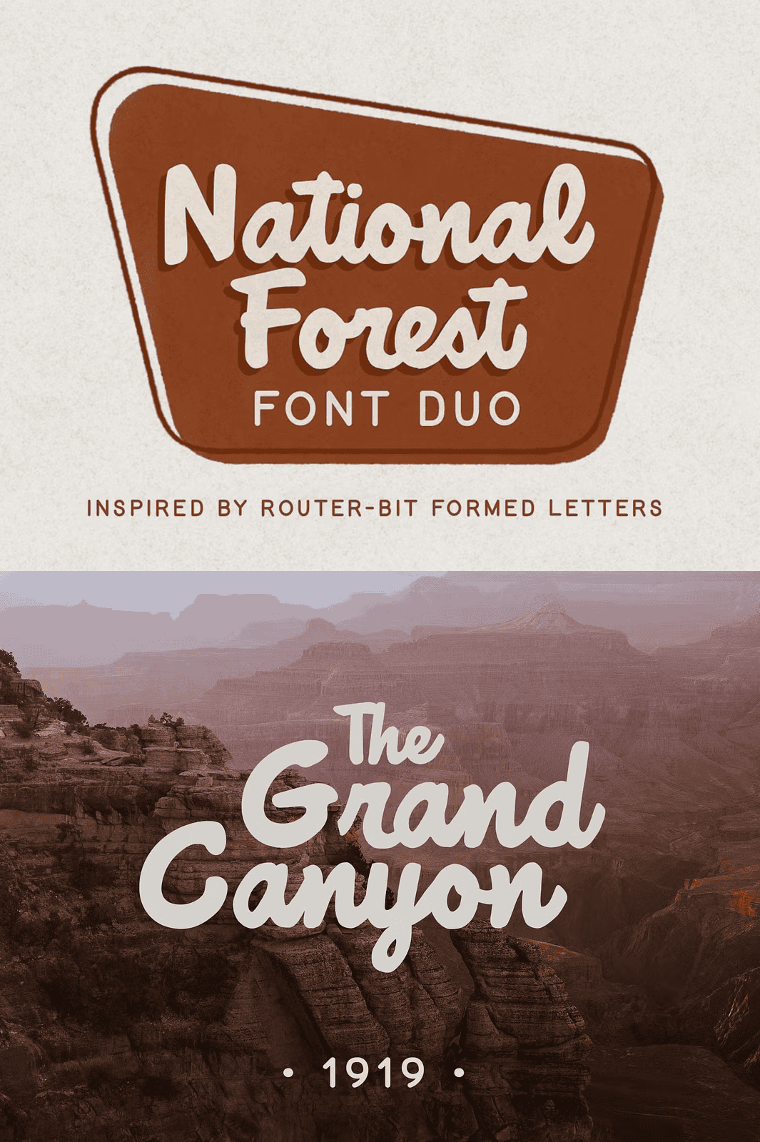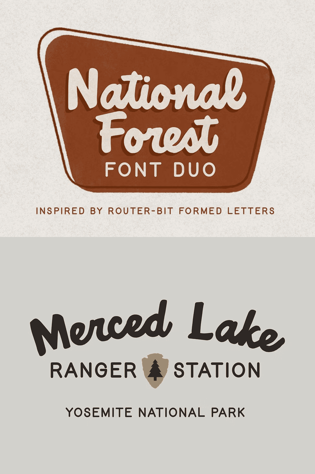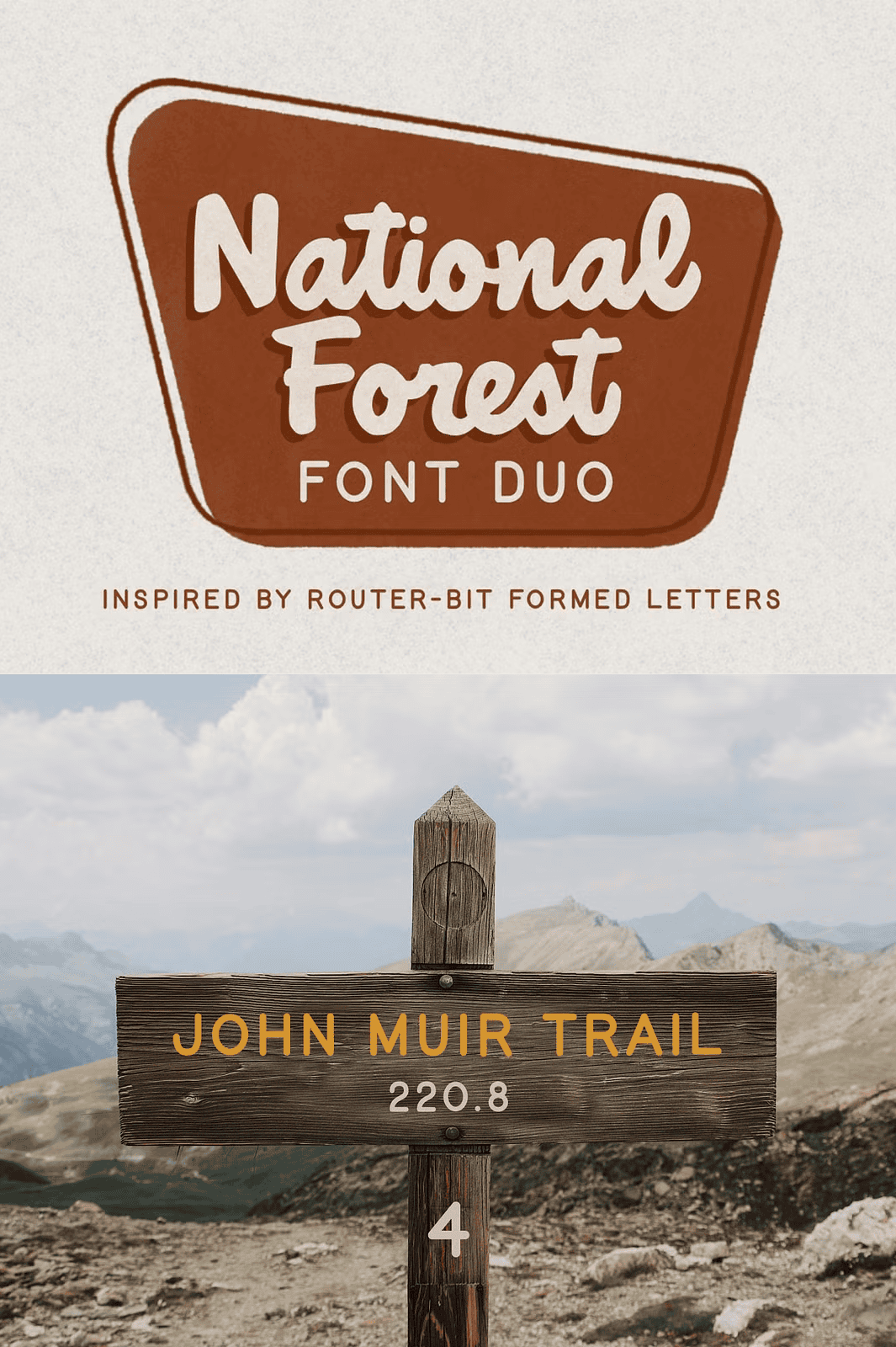 Recreate the Soul of Nature Trails: The National Forest Font Duo Captures Vintage Park Sign Aesthetic