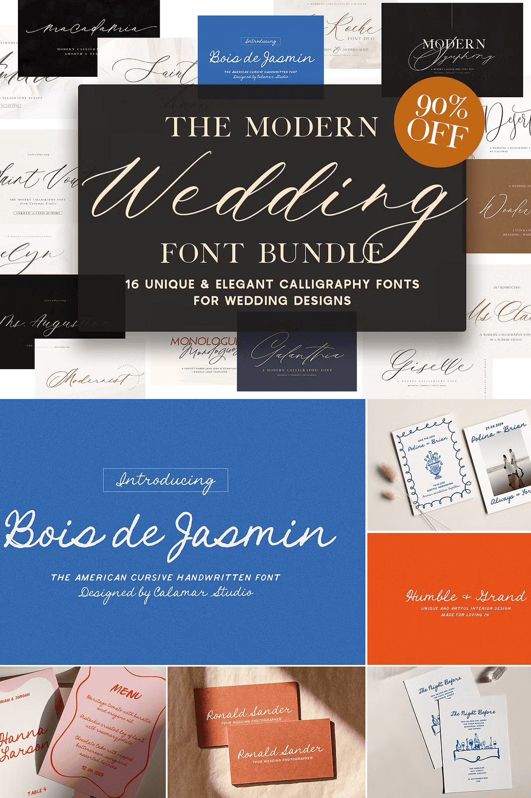 - Bois de Jasmin – A soft, airy script with subtle flourishes and organic rhythm, ideal for nature-inspired weddings.