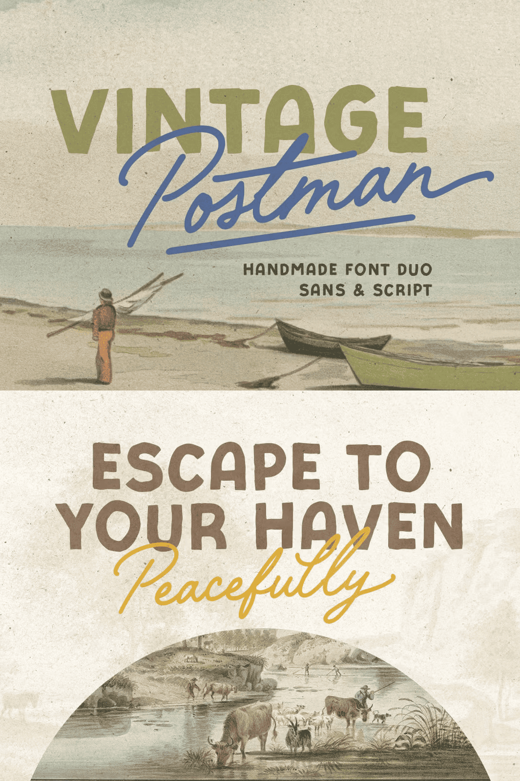 Step into a bygone era with **Vintage Postman**, a powerful handmade font duo that blends bold sans-serif strength and elegant monoline script flair. Designed for creatives who crave personality, character, and timeless appeal, this duo delivers the perfect fusion of retro energy and modern usability. Whether you’re crafting eye-catching posters, designing striking logotypes, composing impactful quotes, or building a memorable brand identity, Vintage Postman gives your work an instant sense of history and authenticity.