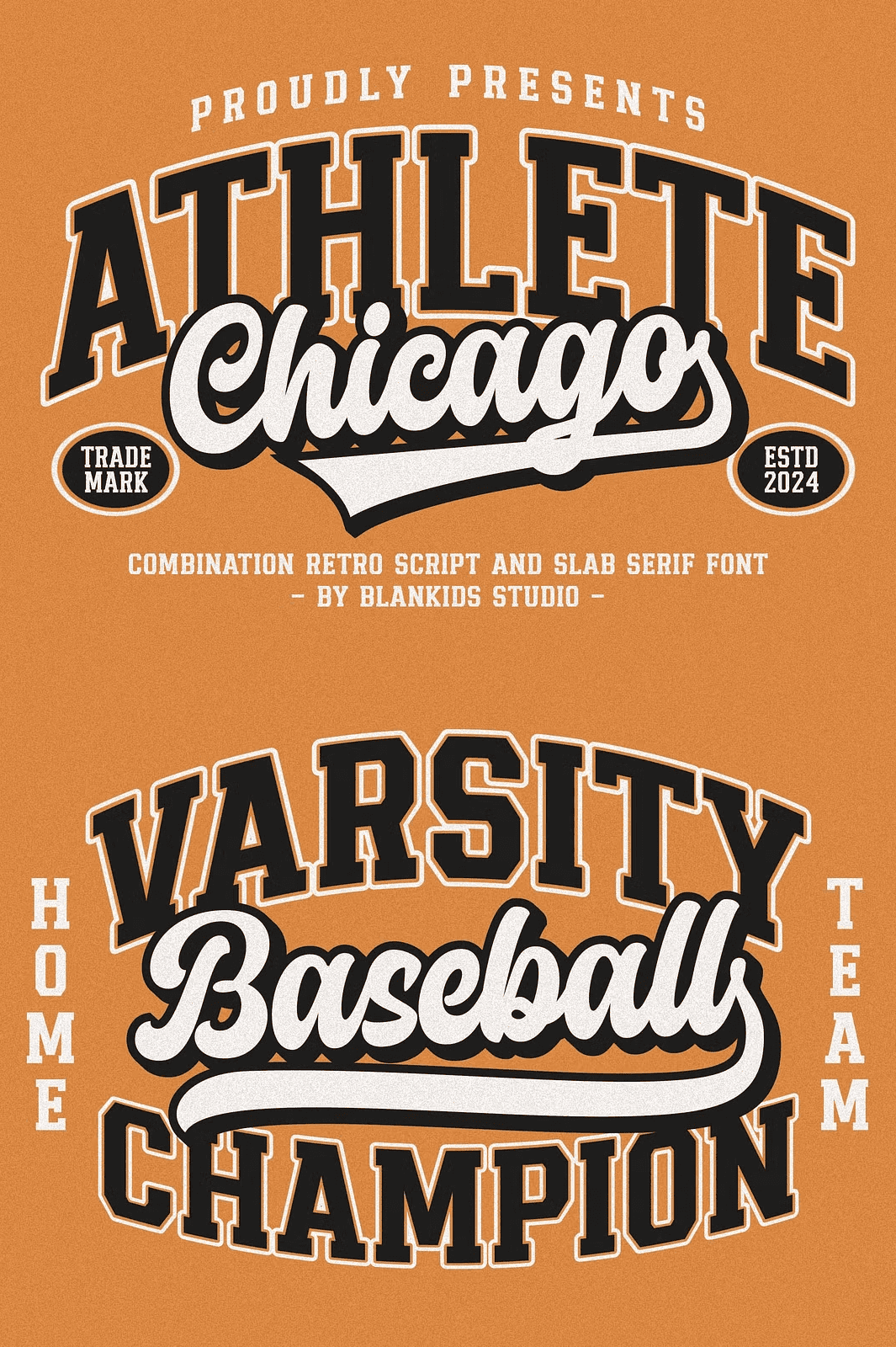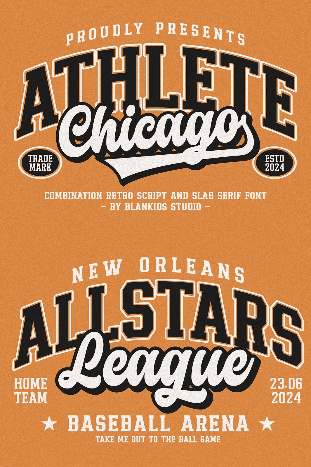 Transform every project with **Chicago Athlete** — a high-octane retro sporty font combination crafted by **Blankids Studio** for designers who demand impact, energy, and vintage authenticity. This isn’t just a font — it’s a visual statement. Designed with the spirit of 1970s and 1980s athletics in mind, every letter pulses with the grit, motion, and boldness of legendary team logos, varsity jackets, and stadium signage.