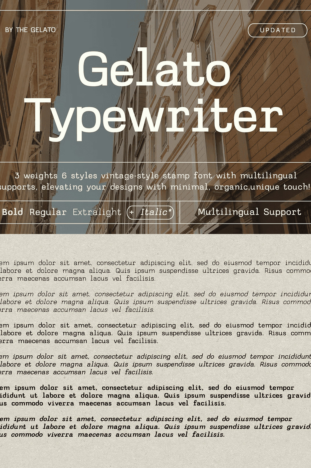 Don’t settle for bland typefaces. Embrace the organic texture, the subtle imperfections, and the timeless appeal of the typewriter era. With Gelato Typewriter, your designs don’t just communicate—they connect.