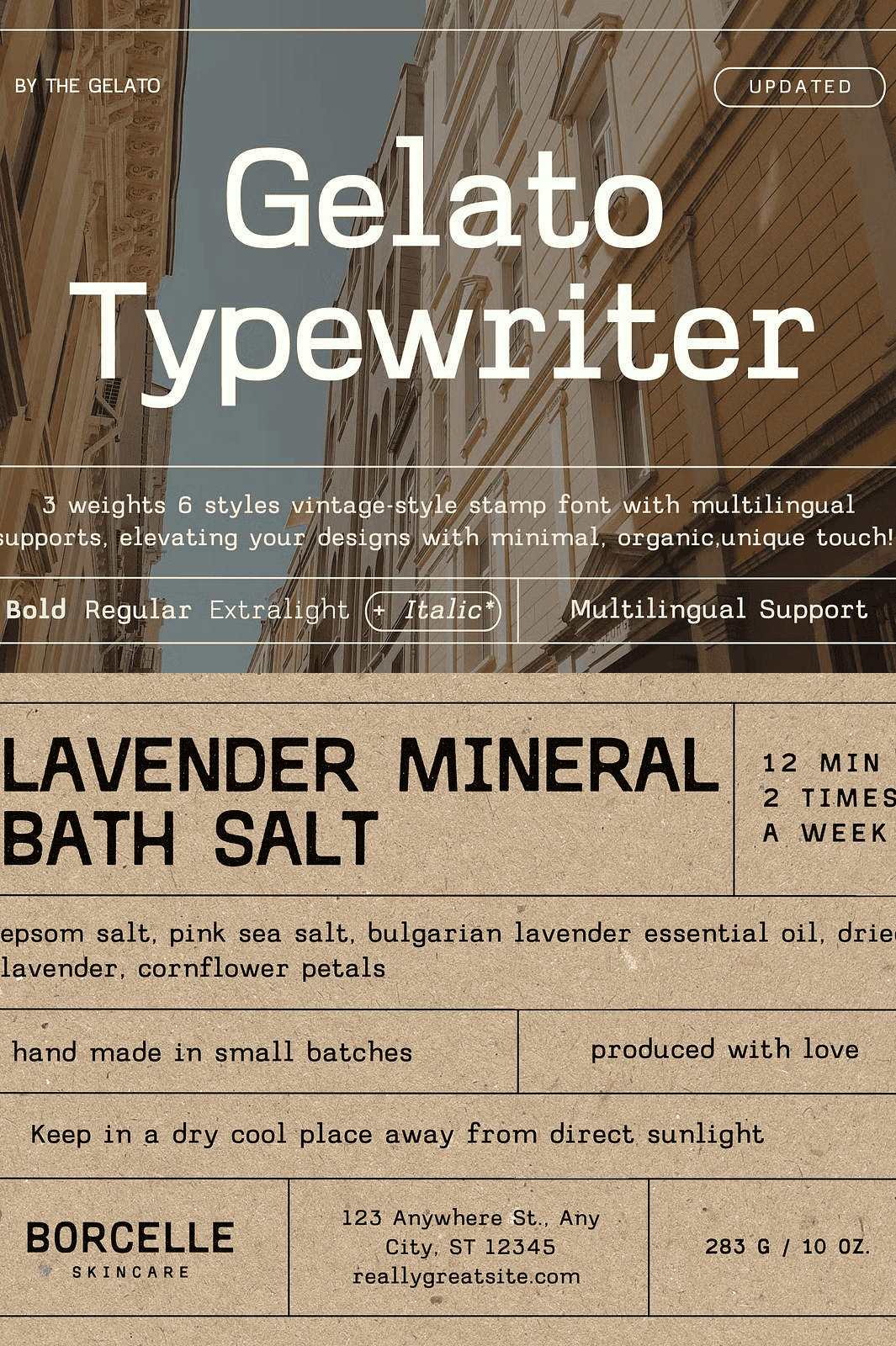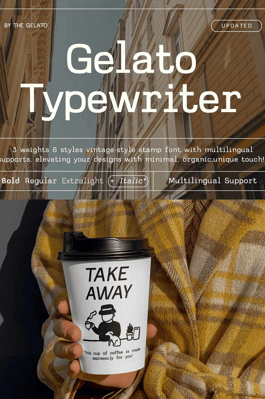 Designed for real-world creative workflows, Gelato Typewriter includes both OTF and TTF file formats, ensuring compatibility across all major platforms including Windows, macOS, and Linux. The font supports multilingual characters, so you can confidently design for international audiences using Latin, Cyrillic, Greek, and other scripts without losing style or legibility.