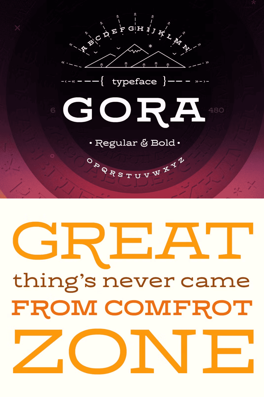 • Gora Bold – A full-throated powerhouse. Designed to dominate the page, it’s ideal for strong logos, large-scale titles, and any project where you need commanding presence and visual weight.
