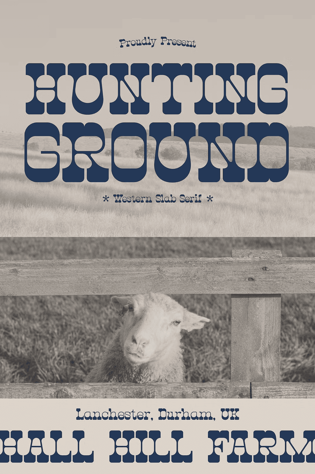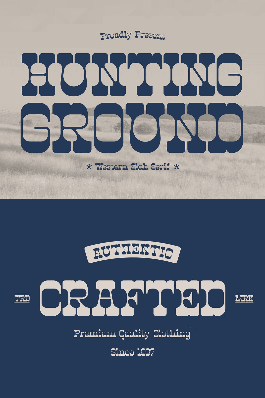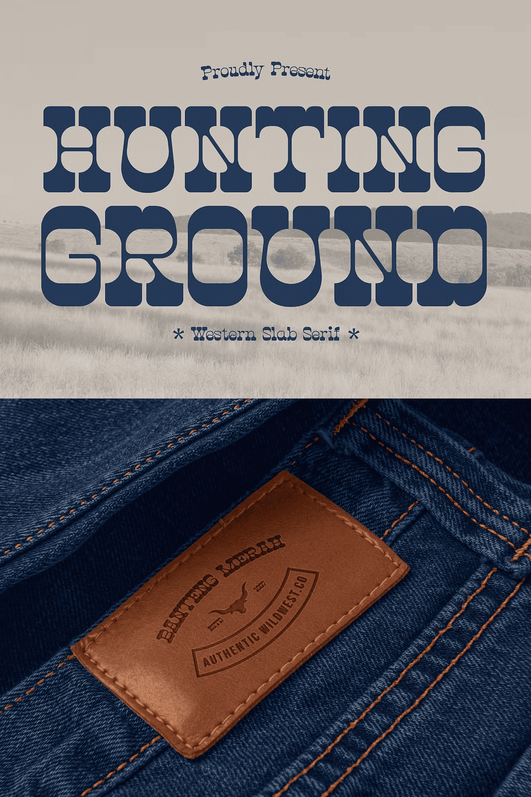 Forge unforgettable visual narratives with **Hunting Ground**, a dynamic Western slab serif font that channels raw, rugged authenticity into every character. Designed for creators who thrive on bold statements and timeless aesthetics, Hunting Ground delivers a commanding presence perfect for branding, packaging, apparel, and high-impact design projects. Its sharp, geometric serifs, strong horizontal lines, and deliberate weight distribution create a sense of permanence and strength—ideal for conveying durability, independence, and a no-nonsense attitude. Whether you’re crafting a brand identity for an outdoor lifestyle company or designing a limited-edition shirt, Hunting Ground sets the tone from the first glance.