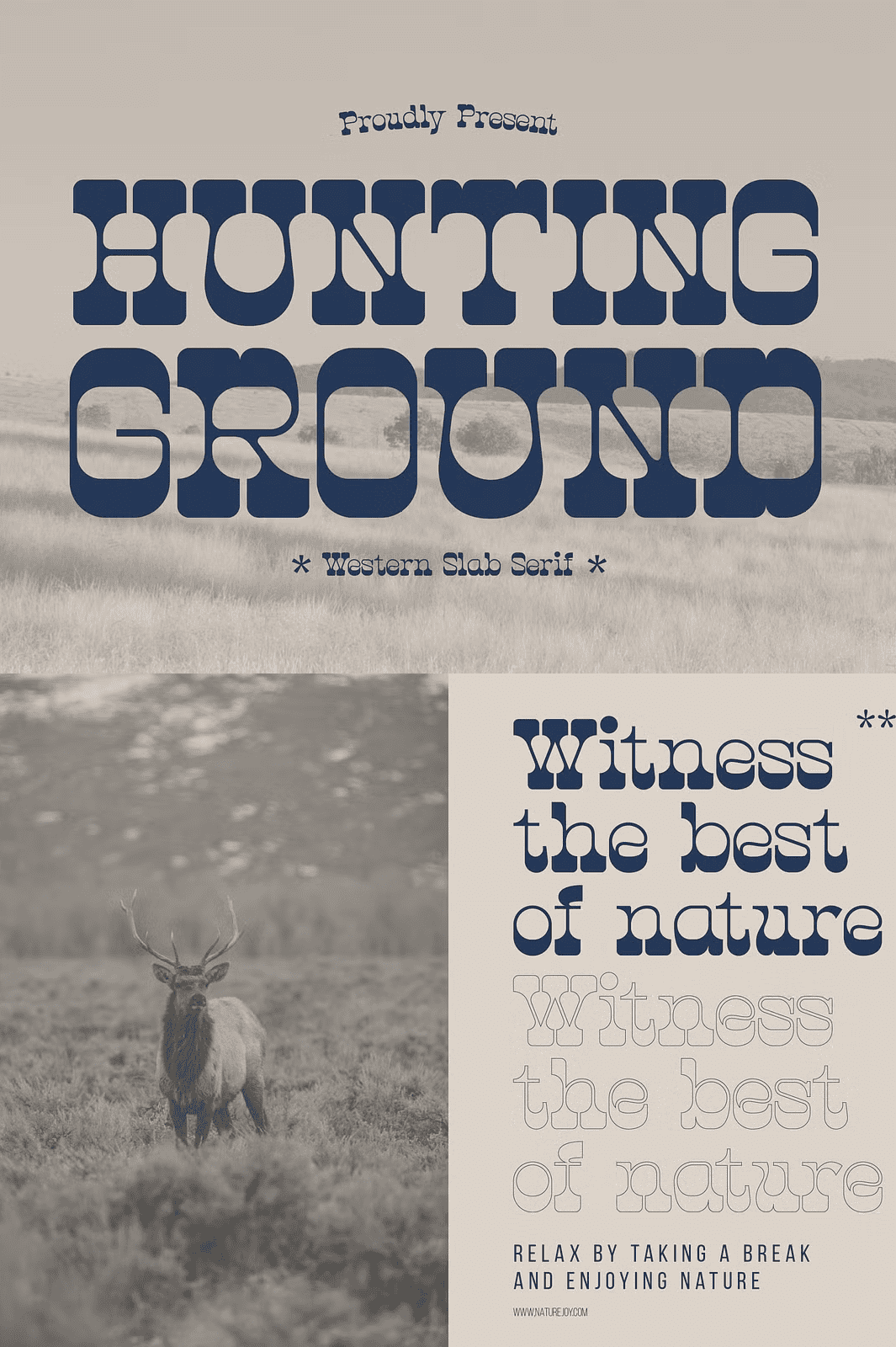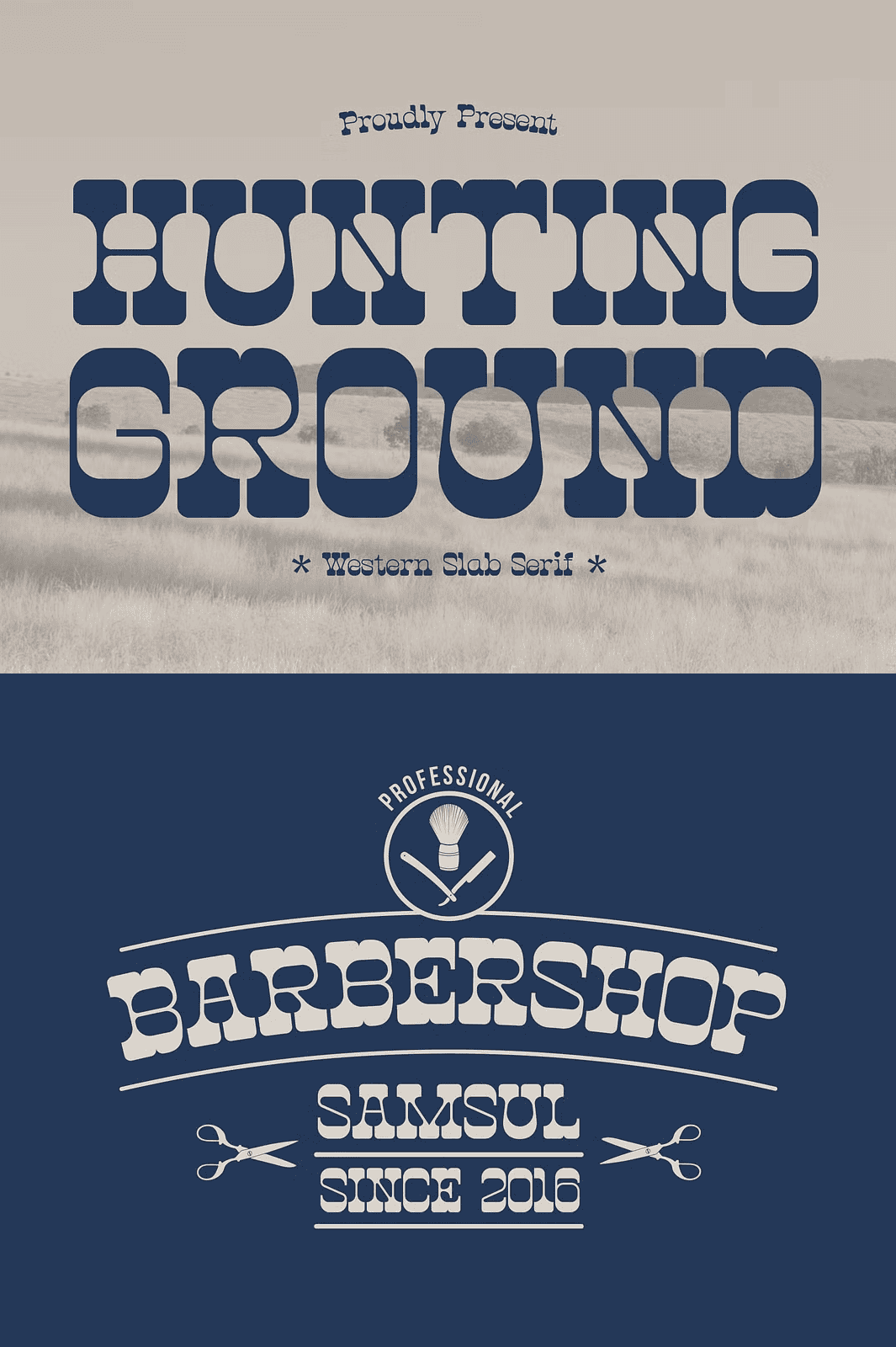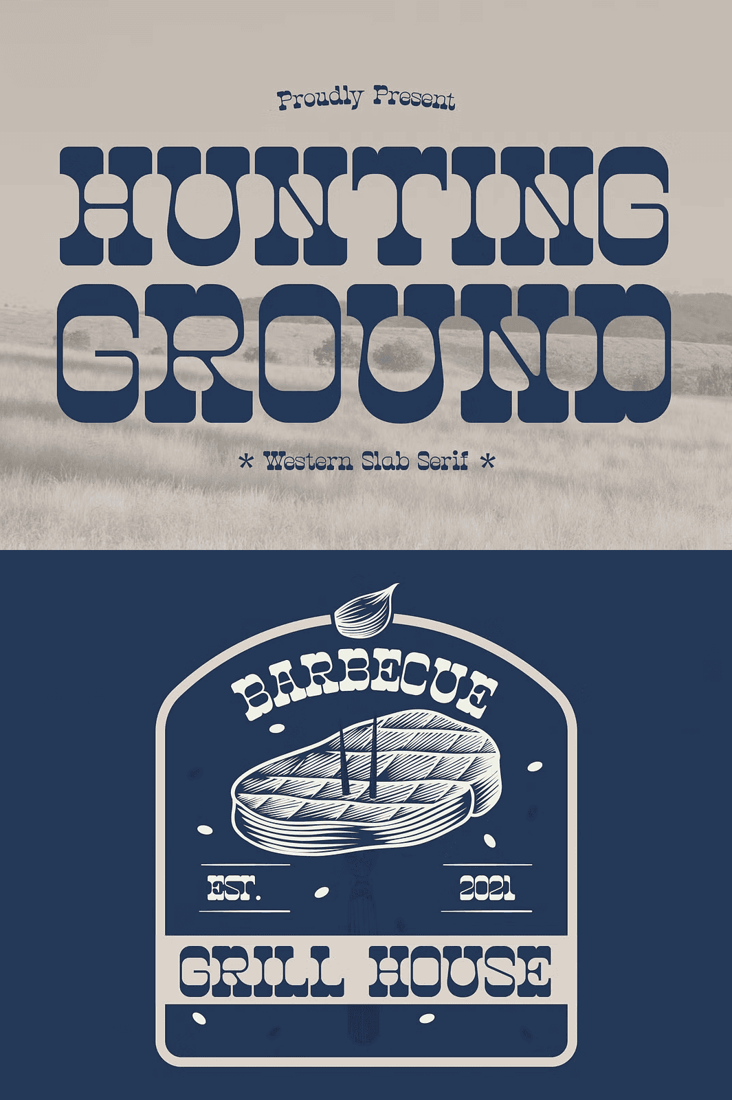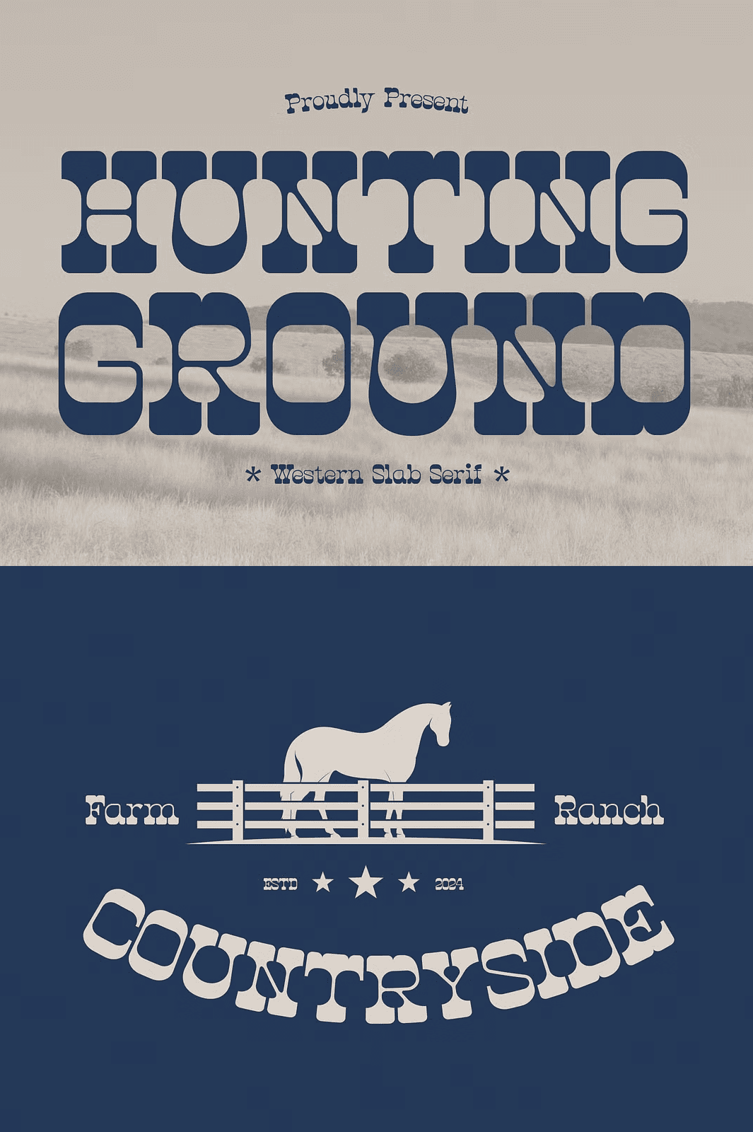 Forge unforgettable visual narratives with **Hunting Ground**, a dynamic Western slab serif font that channels raw, rugged authenticity into every character. Designed for creators who thrive on bold statements and timeless aesthetics, Hunting Ground delivers a commanding presence perfect for branding, packaging, apparel, and high-impact design projects. Its sharp, geometric serifs, strong horizontal lines, and deliberate weight distribution create a sense of permanence and strength—ideal for conveying durability, independence, and a no-nonsense attitude. Whether you’re crafting a brand identity for an outdoor lifestyle company or designing a limited-edition shirt, Hunting Ground sets the tone from the first glance.