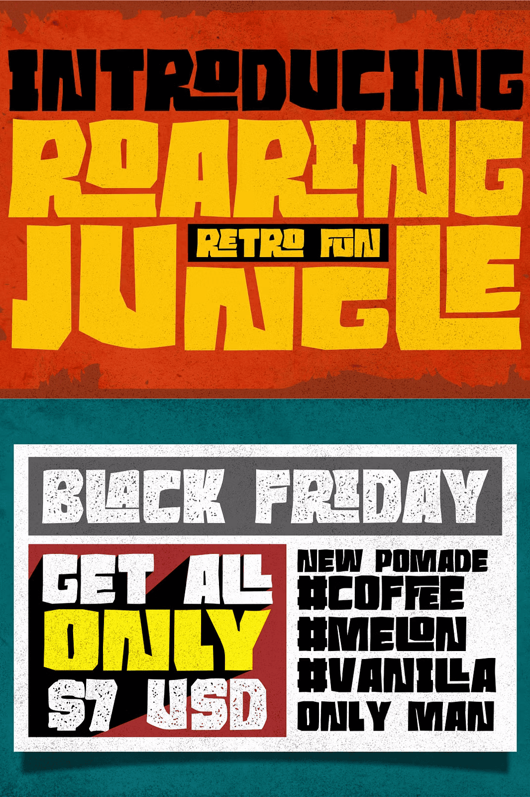 Don’t settle for ordinary. Stand out with a font that commands attention and carries a story. With its unique stone-inspired curves, dual styles, and robust multilingual features, Roaring Jungle is a must-have for every designer’s toolkit. Whether you’re rebranding a vintage shop, launching a retro product line, or just craving that retro edge, this font delivers the power and personality you need.