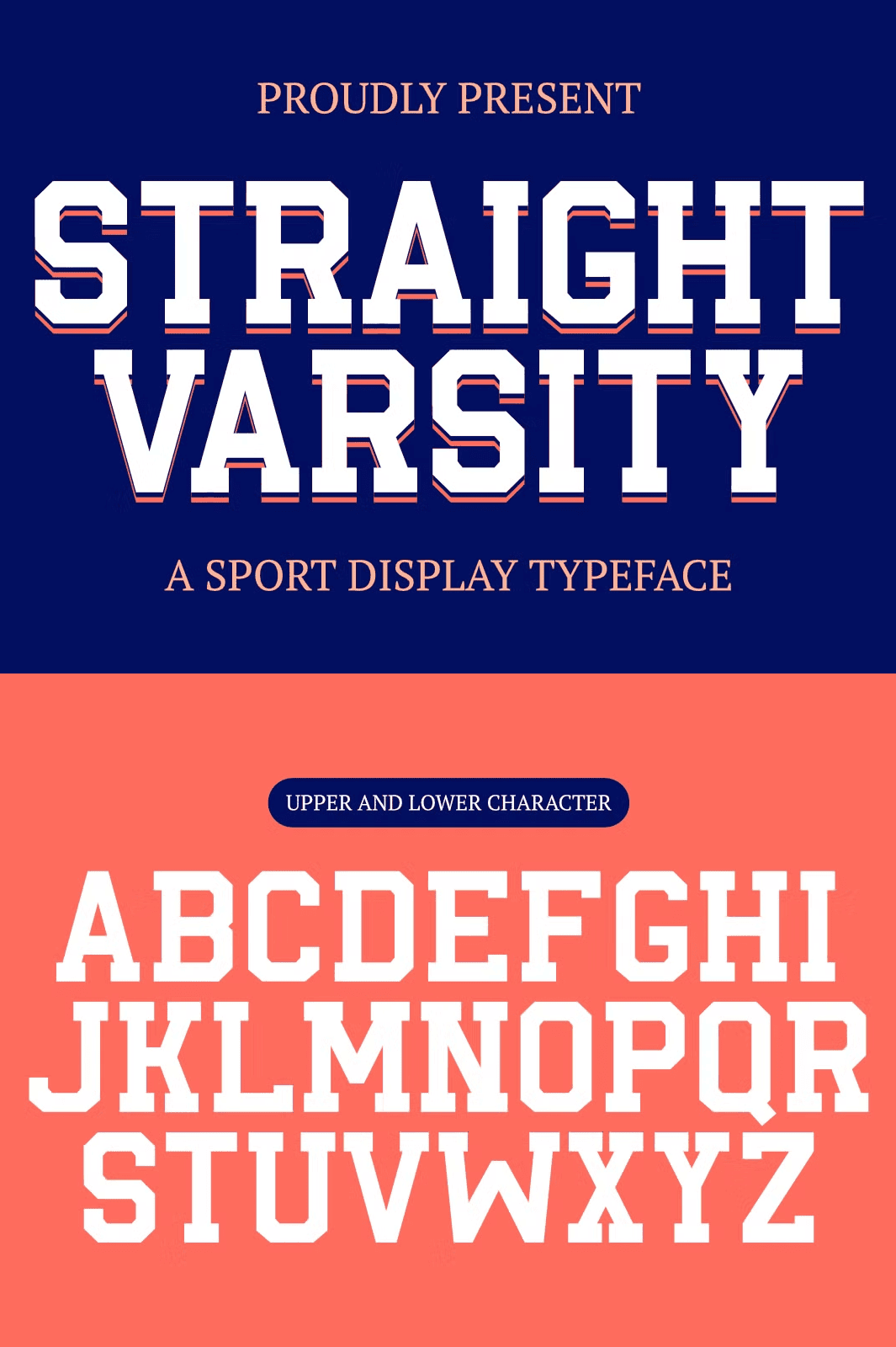 Transform your creative vision with **Straight Varsity**, a dynamic and powerful sport display font engineered for impact. This isn’t just a typeface — it’s a visual declaration of strength, energy, and competition. Drawing inspiration from classic varsity jackets, retro athletic jerseys, and vintage team emblems, Straight Varsity delivers bold, center-aligned letterforms that command attention and convey authenticity. Whether you’re designing for sports teams, launching a youth brand, creating bold merch, or building a digital campaign, this font gives your work the instant credibility and visual power it deserves.