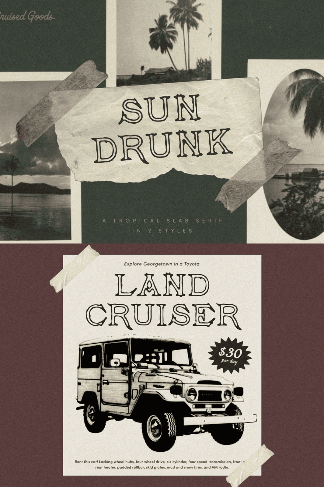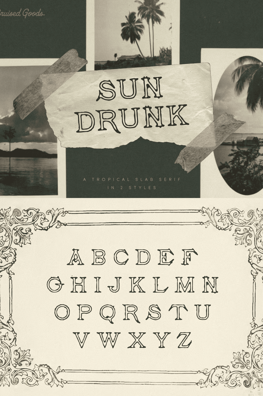 Unleash the spirit of faraway islands and sun-bleached adventures with Sun Drunk, a boldly handcrafted slab serif font designed for creatives who crave authenticity, character, and unforgettable visual impact. Every curve and stroke of this typeface tells a story of coastal exploration, golden horizons, and timeless wanderlust. Crafted meticulously by Bruised Goods, Sun Drunk isn’t just a font—it’s a full sensory experience, ready to elevate your branding, design projects, and artistic expressions with unapologetic tropical flair.