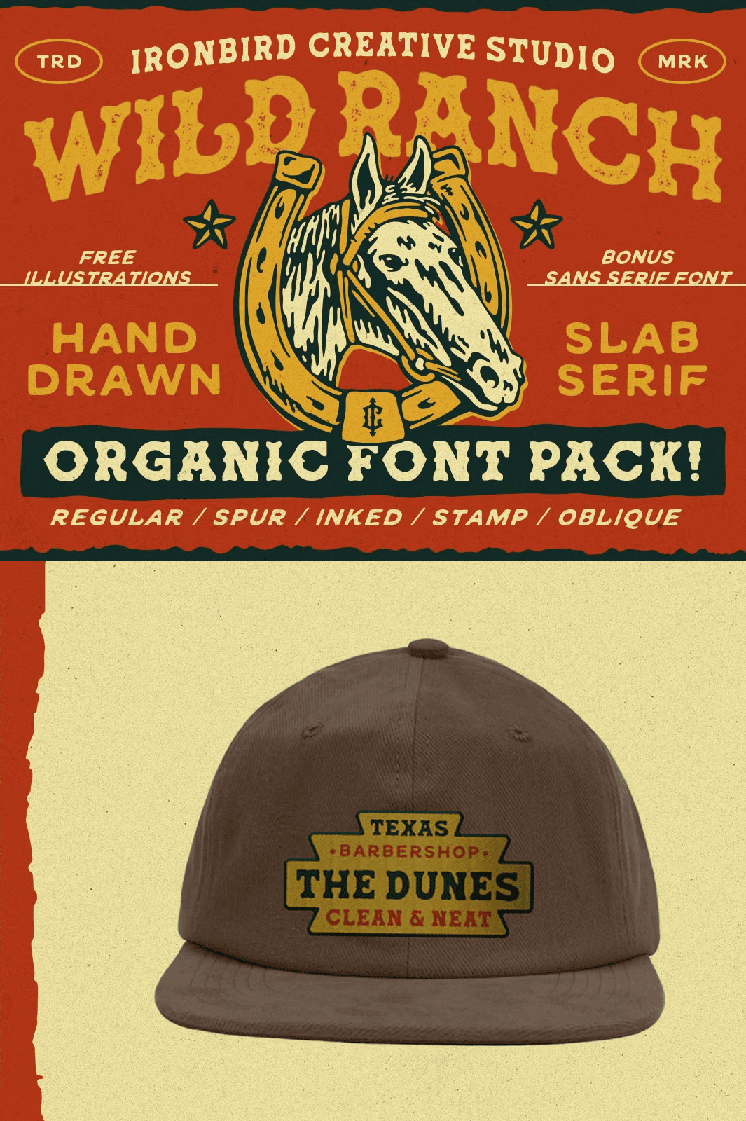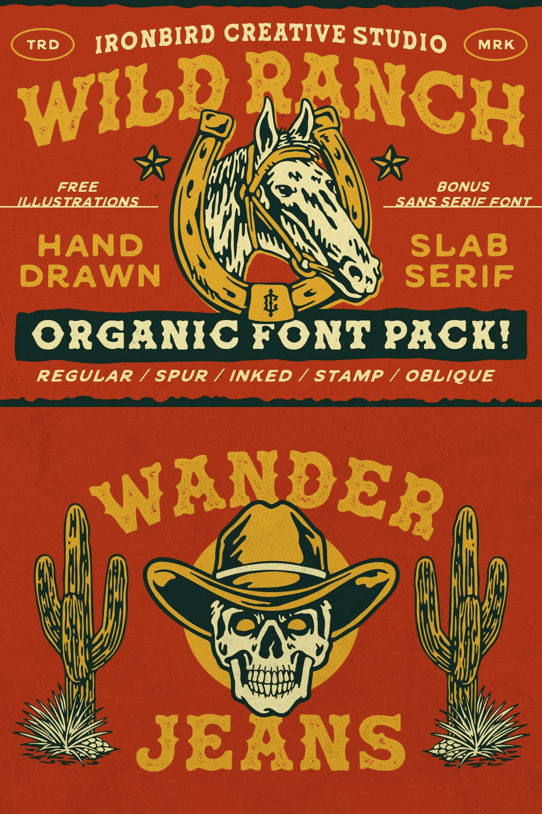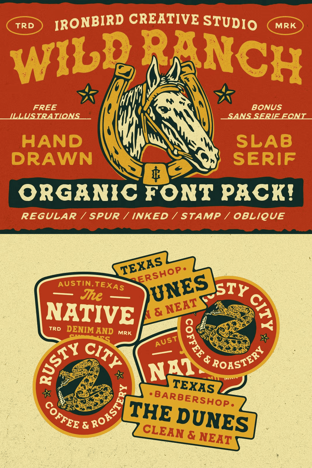 • Wild Ranch Sans Serif – a clean, complementary sans that balances the slab’s weight while preserving the hand‑drawn texture.