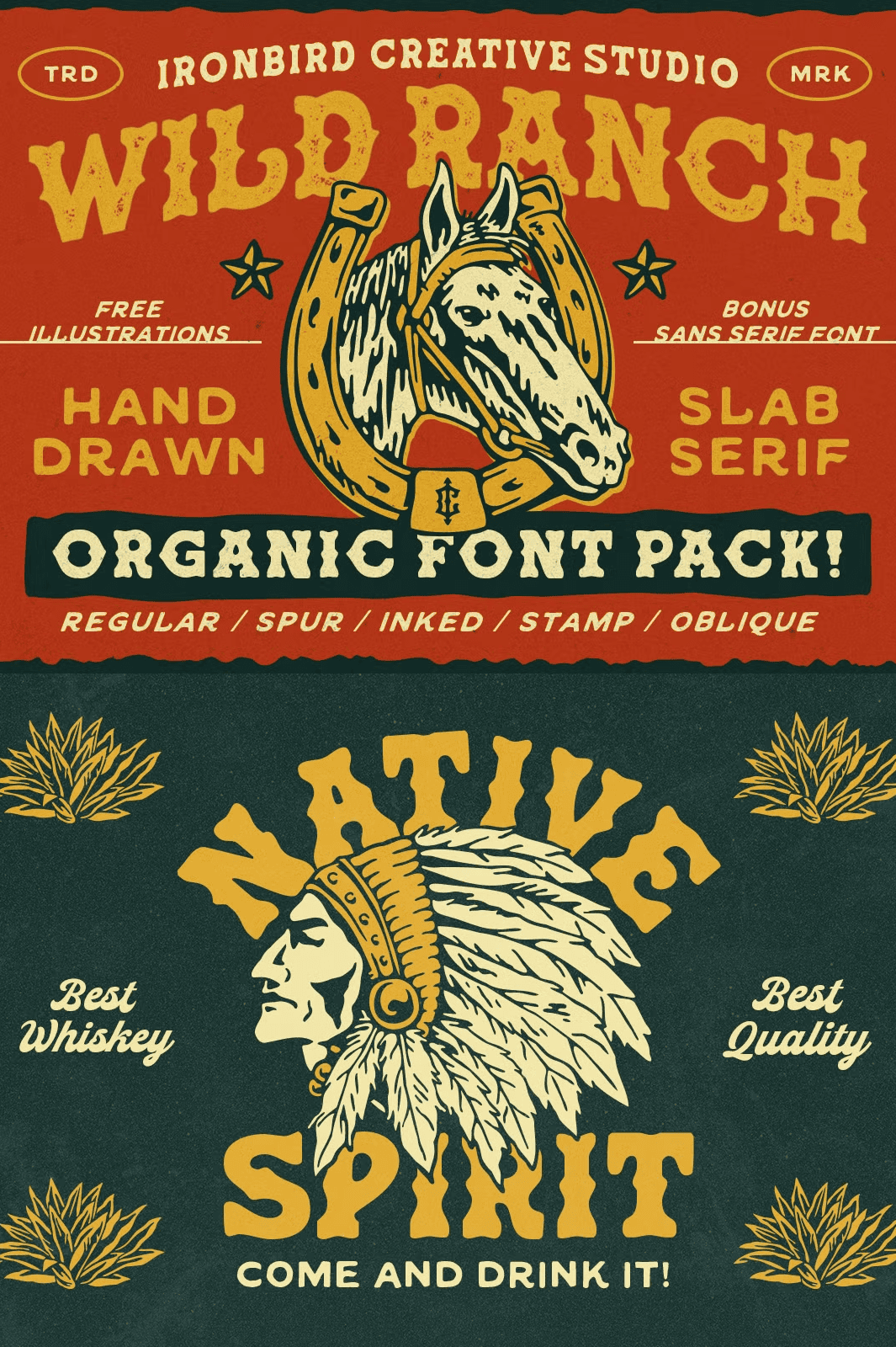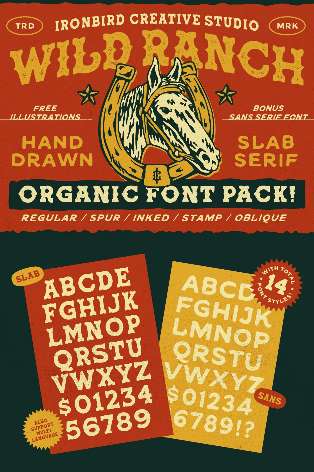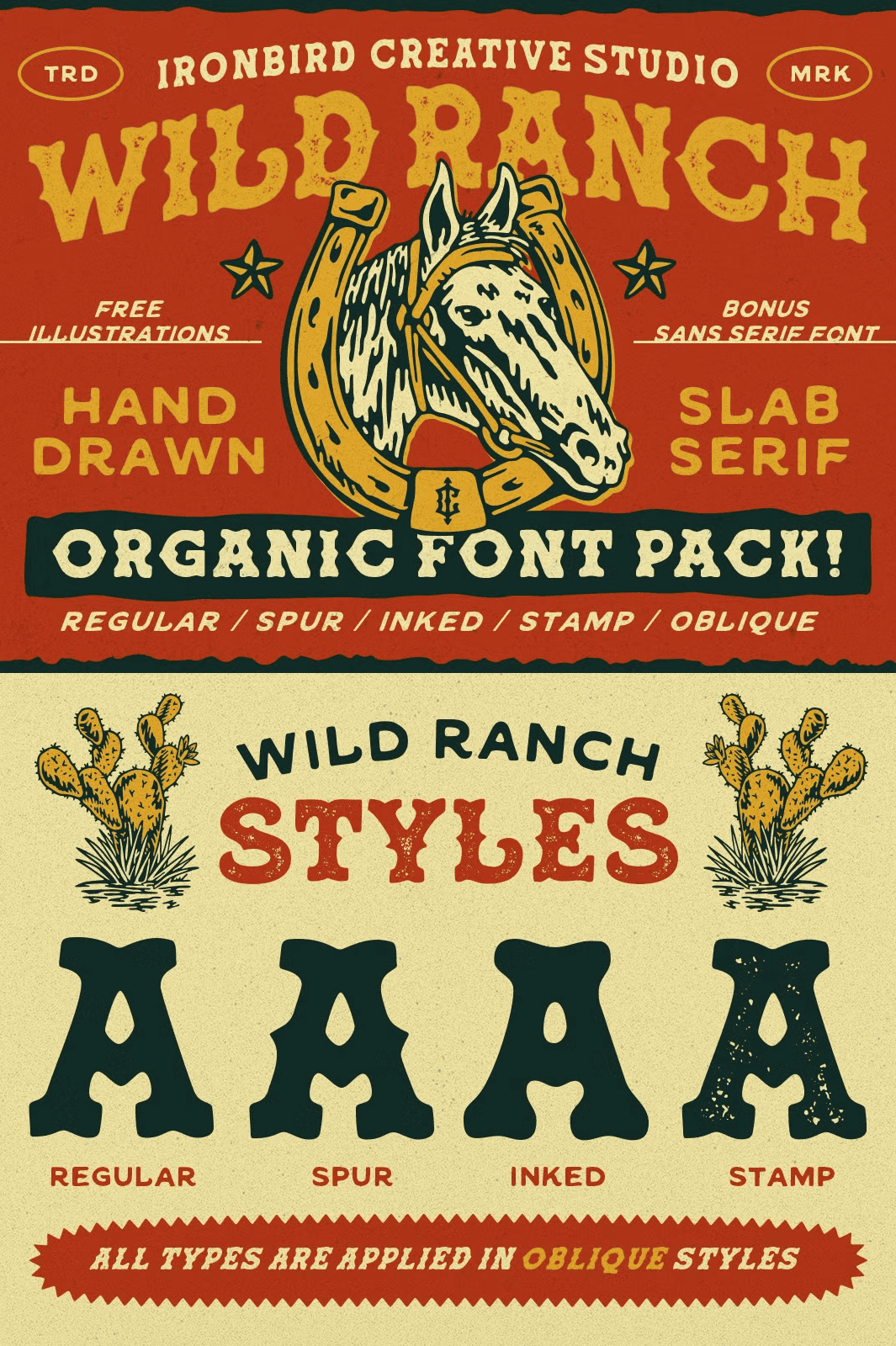 • Wild Ranch Sans Serif – a clean, complementary sans that balances the slab’s weight while preserving the hand‑drawn texture.